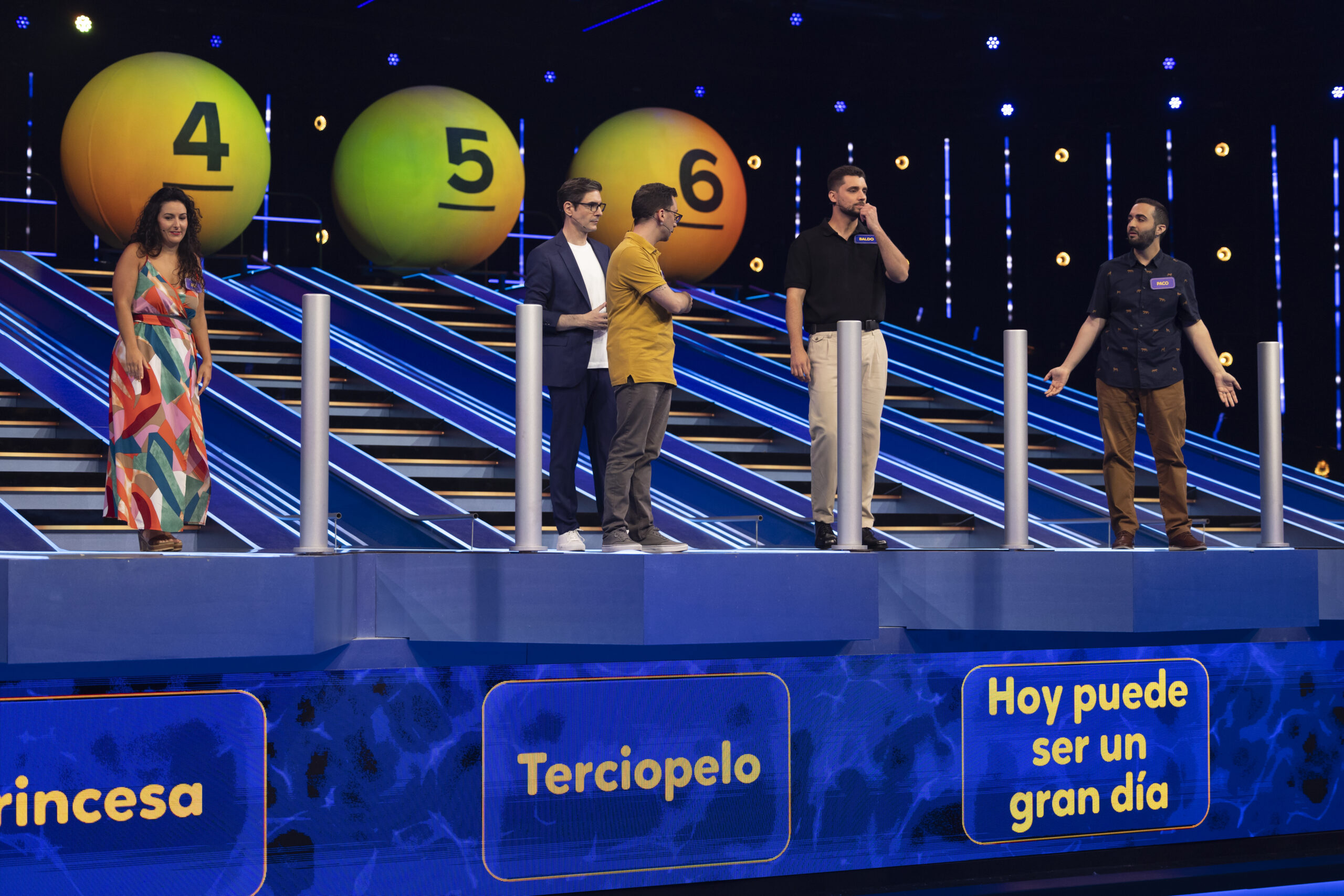 En cada entrega de este formato, que mezcla un concurso de preguntas de alto riesgo con una competición física a gran escala, dos equipos se enfrentan sobre una plataforma elevada con un único objetivo: mantenerse secos… y llevarse el dinero. Dos equipos de cinco personas se enfrentan en cada programa, poniendo a prueba sus conocimientos para evitar caer al agua. Los participantes deberán responder a un cuestionario de opción múltiple mientras se sitúan frente a bolas gigantes que pueden detenerse o empujarlos sin piedad a una piscina si fallan en su elección. Porque en ‘Juego de Pelotas’, si te equivocas, no solo lo pagas con puntos… también con un buen chapuzón.