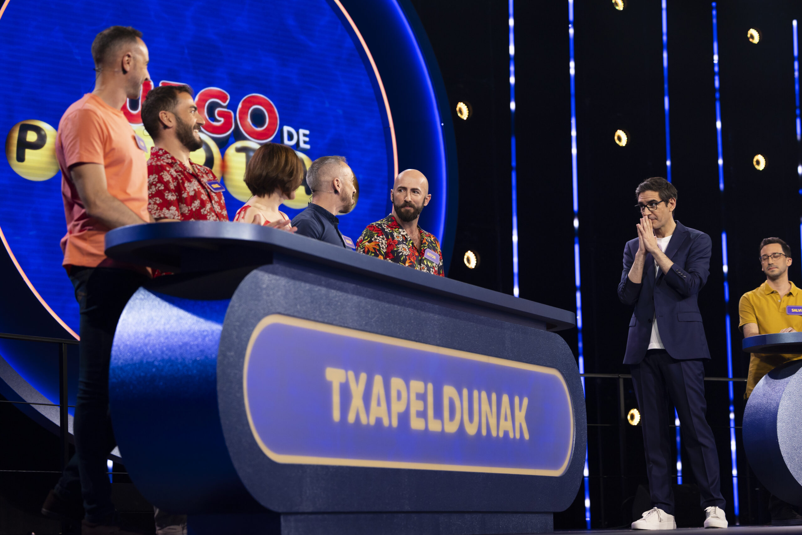 Desde el País Vasco llega una cuadrilla unida por la amistad, el sentido del humor y una pasión muy particular: Eurovisión. Para los Txapeldunak, el festival es más que una cita musical, es todo un acontecimiento que viven cada año como si fuera su propia final de la Champions. Con su energía contagiosa y su espíritu competitivo, llegan a ‘Juego de Pelotas’ dispuestos a cantar victoria y a llevarse el premio para celebrar su propia “noche de micrófono de cristal”.
