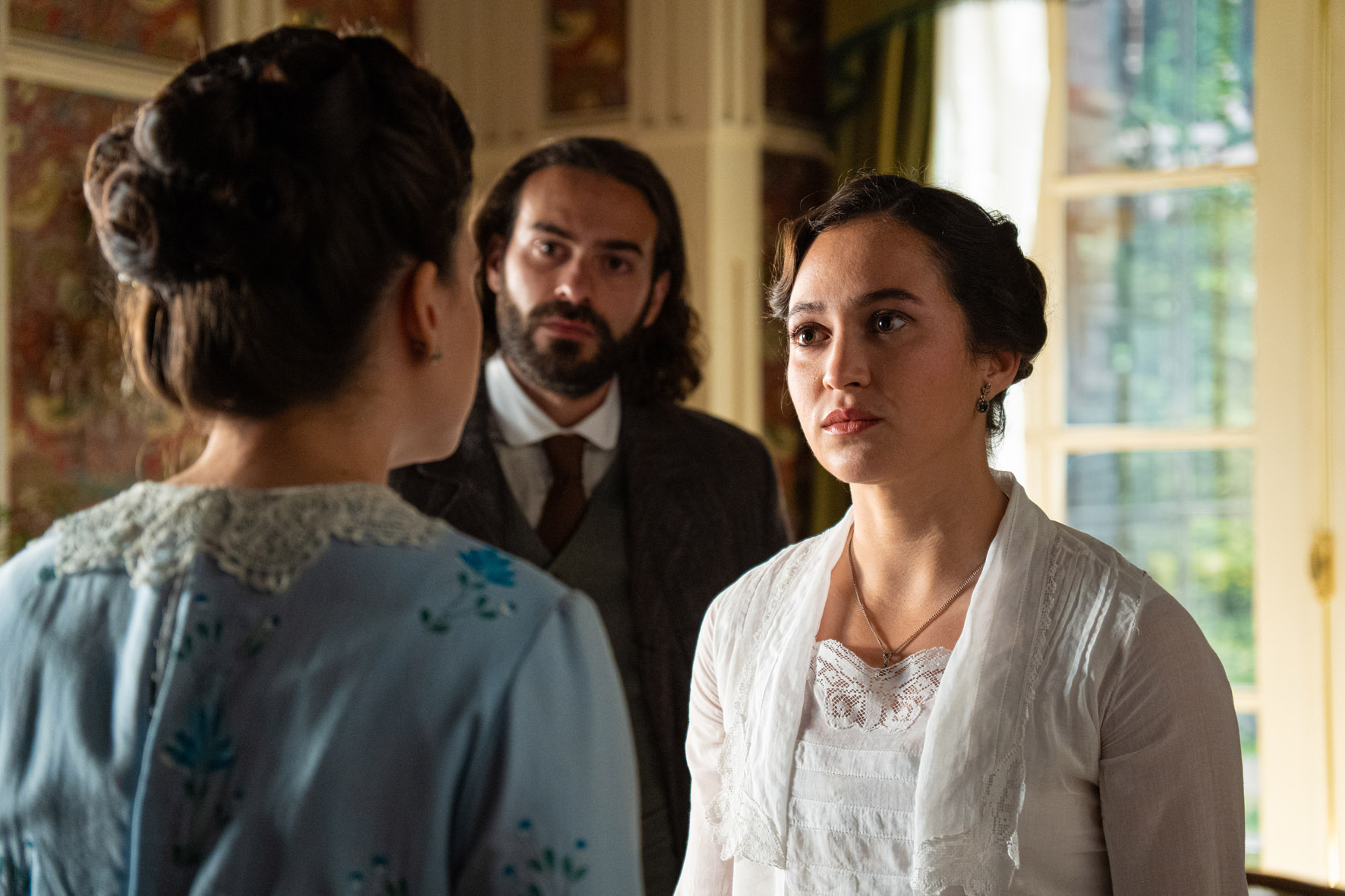 La situación de Rafaela comienza a mejorar gracias al doctor Guillén, cuyo valor al atenderla devuelve la esperanza a Catalina y Adriano. Además, reafirman su decisión de no ceder ante las amenazas del barón de Valladares. Manuel, Enora y Toño celebran el éxito de su motor y debaten entusiasmados sobre su próximo proyecto. La muchacha comprende que Manuel sigue profundamente enamorado de Jana. Santos confiesa a Ricardo que su madre, Ana, lo usó para hacerle daño, pero sigue resentido con Pía por interferir en su vida familiar. Crece la preocupación en torno a Samuel, cuya misteriosa desaparición inquieta profundamente a María Fernández y Petra. Además, la señora Arcos se siente frustrada tras discutir con Cristóbal, quien, pese a sus buenos modales, genera incomodidad en todos. Ángela insiste en ayudar a Curro investigando los negocios turbios del capitán, pese a la negativa inicial del joven, preocupado por ponerla en peligro. Leocadia, por su parte, está preocupada por su reputación y Lorenzo, de manera inusitada, se ofrece a resolver eso con una propuesta disparatada. ¿De qué se trata?
