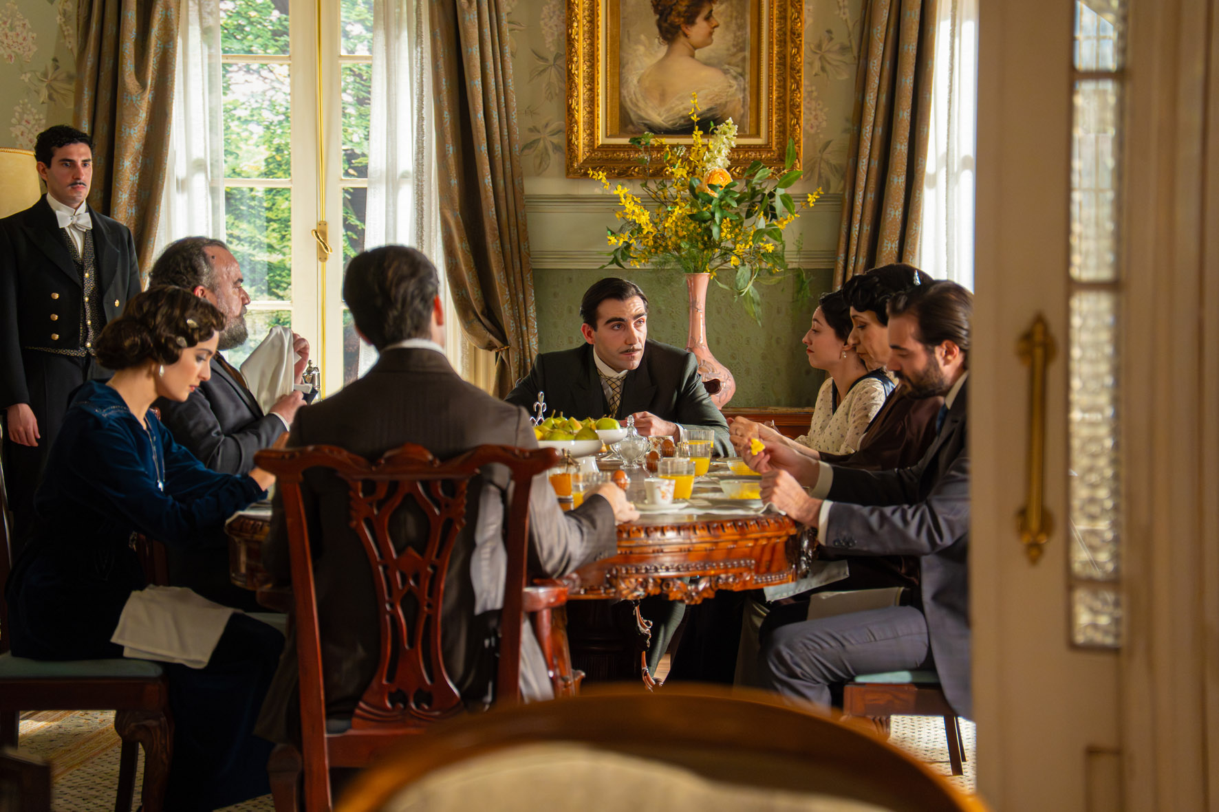 La percepción de todo el mundo sobre la chica misteriosa es unánime: es un encanto de mujer, pero Curro se da cuenta de que a su hermano le sucede algo con ella… Lorenzo estalla porque Ángela ha regalado su vestido de boda a Enora. Piensa mover cielo y tierra para impedir que Curro se haga con el título de Barón de Linaja. Manuel intenta calmar a las cocineras por la inminente marcha de Toño y Enora. María Fernández y Carlo reciben las felicitaciones de casi todos sus compañeros por el embarazo. Los jefes de servicio dan su visto bueno a la noticia, pero creen que deberían haberles avisado antes. Margarita pide a Alonso que quite a Leocadia el control de las tierras para dárselas a Ciro. El marqués, finalmente, propone a su sobrino llevar la gestión de la finca. Santos confirma a Leocadia que Cristóbal se está distanciando de Teresa… y, además, le dice que María está embarazada.
