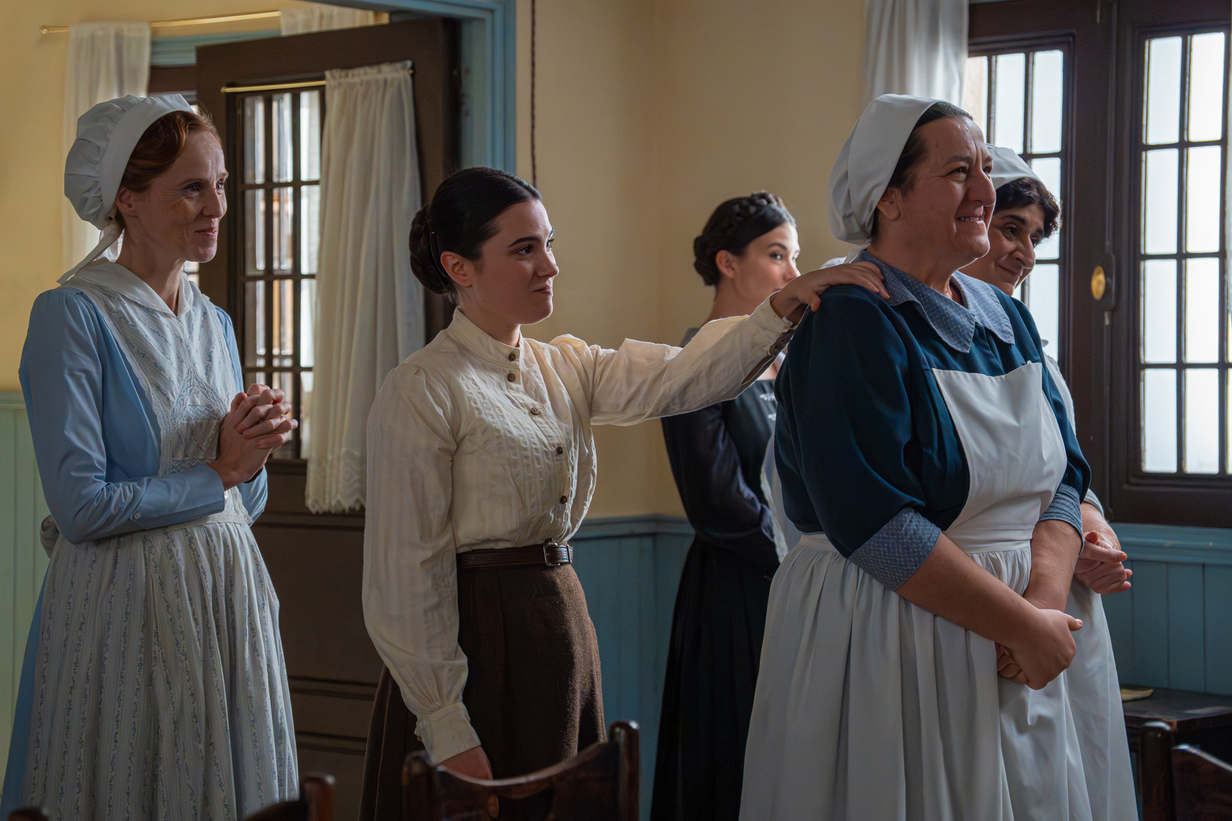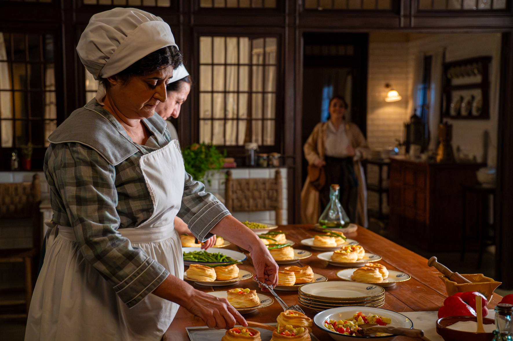 La percepción de todo el mundo sobre la chica misteriosa es unánime: es un encanto de mujer, pero Curro se da cuenta de que a su hermano le sucede algo con ella… Lorenzo estalla porque Ángela ha regalado su vestido de boda a Enora. Piensa mover cielo y tierra para impedir que Curro se haga con el título de Barón de Linaja. Manuel intenta calmar a las cocineras por la inminente marcha de Toño y Enora. María Fernández y Carlo reciben las felicitaciones de casi todos sus compañeros por el embarazo. Los jefes de servicio dan su visto bueno a la noticia, pero creen que deberían haberles avisado antes. Margarita pide a Alonso que quite a Leocadia el control de las tierras para dárselas a Ciro. El marqués, finalmente, propone a su sobrino llevar la gestión de la finca. Santos confirma a Leocadia que Cristóbal se está distanciando de Teresa… y, además, le dice que María está embarazada.