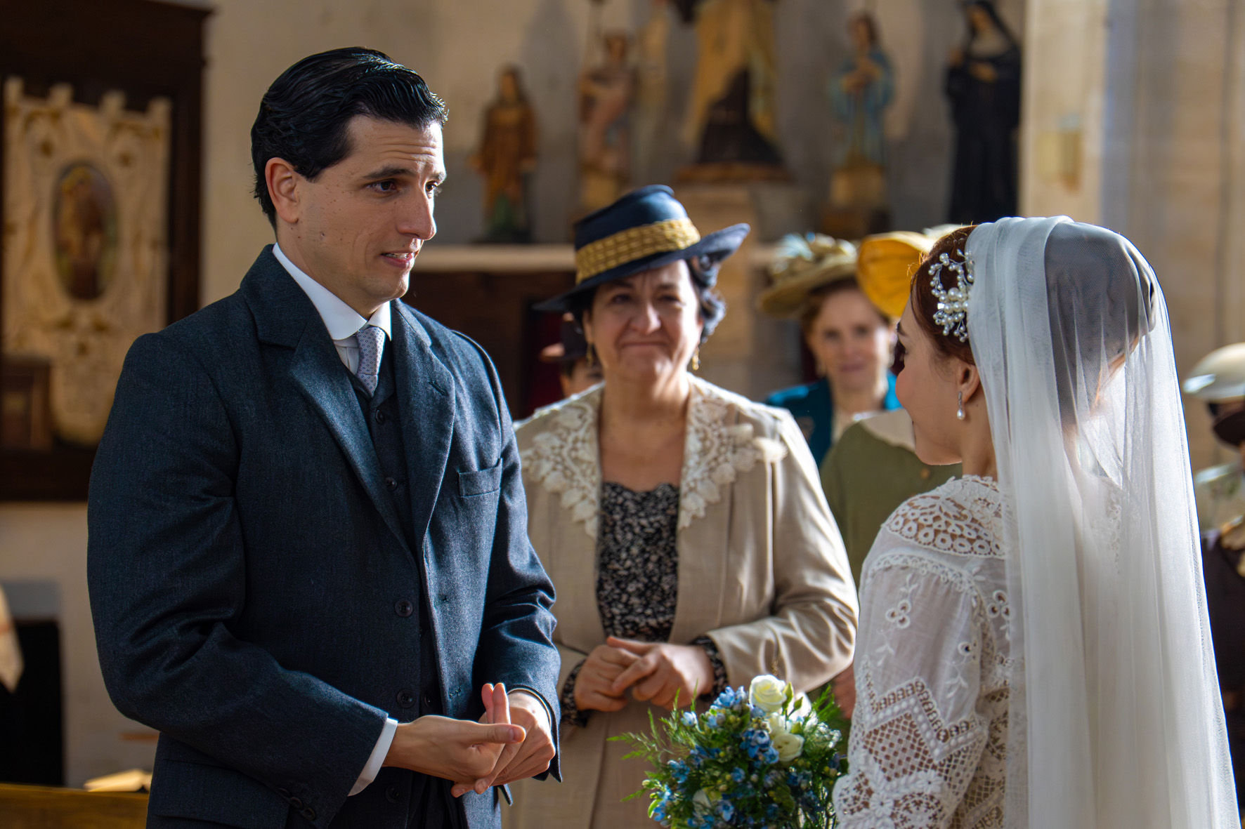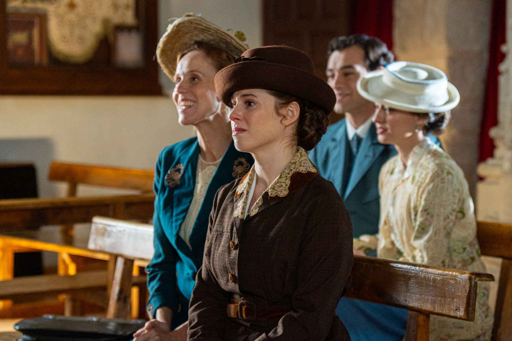 Alonso “libera” a Leocadia de la responsabilidad de las tierras y ella se lo toma mal. Simona y Candela comentan que María se ha tenido que estar fajando, porque los tiempos de embarazo no cuadran. Pía y Samuel piden a las cocineras que no la juzguen. Manuel felicita a María Fernández por su embarazo y le tiende su brazo para ayudarla en lo que necesite. Margarita se marcha de La Promesa y se despide de Martina y de Alonso. Piensa que, al menos, su paso allí ha servido para que Leocadia pierda un poco de poder. Teresa pregunta a Cristóbal por su cercanía con Ángela y él le cuenta una mentira respecto a una consulta legal. El ama de llaves encuentra la carta dirigida al mayordomo escrita por Mercedes del Amor. Al fin, Toño y Enora se dan un romántico “sí, quiero” delante de sus allegados. ¡Qué vivan los novios! Por su parte, Manuel y la recién llegada comparten un momento de conexión en la iglesia.