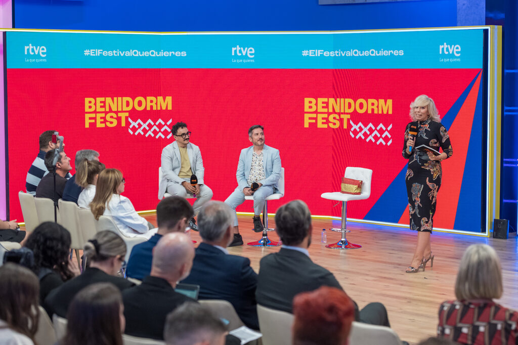 María Eizaguirre, directora de Comunicación y Participación de RTVE, ha asegurado al iniciar la presentación: “Vamos a disfrutar de lo mejor de la música” y ha destacado que “RTVE se ha convertido en el motor de la industria musical. La prueba de ello, es que las cuatro canciones ganadoras en la historia del Benidorm Fest, juntas, acumulan más de 200 millones de reproducciones en plataformas”.