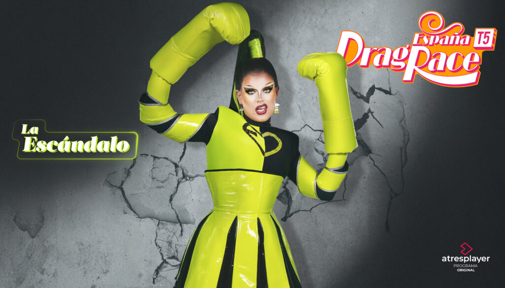 26 años.Castellón/Barcelona. La Escándalo llega desde Barcelona a ‘Drag Race España’ para ser “tu sueño friki”. Afirma que “la gente cree que las drags barcelonesas son chungas, pero yo soy un amor”. Define su personalidad drag como una mezcla de “la elegancia de toda la vida” con los videojuegos. Sus referentes son las mujeres luchadoras y los dibujos de su infancia. Tiene que ser la nueva superestrella drag española porque quiere aportar “un mundo de fantasía y colores a esta España tan gris”.