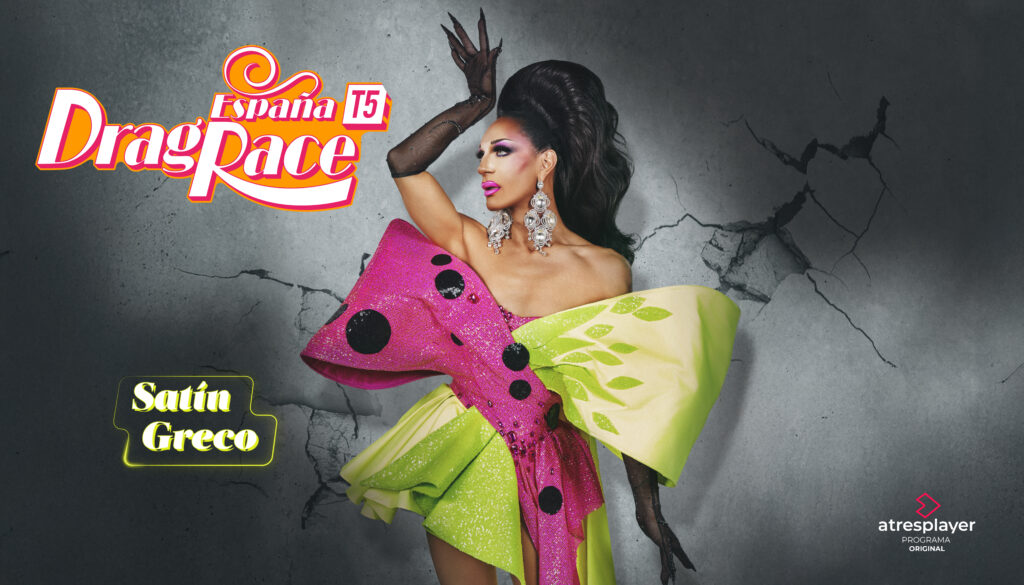 39 años. Torremolinos, Málaga. Satín viene de Torremolinos y se define como “la madre” de la temporada 5. Su nombre viene de la protagonista de Moulin Rouge, mientras que su apellido es un homenaje a su tía, “una gran transformista de España”, Tina Greco. Sus referentes son “el arte español y las grandes folclóricas: Lola Flores, Rocío Jurado o Lina Morgan”. Ella se define como “muy talentosa”. “Lo mismo te hago un folclore español que te levanto la pierna hasta el hombro”. Tiene que ser la nueva superestrella drag española porque ella es “el arte español” y lleva muchos años trabajando “¡como una woman!”.