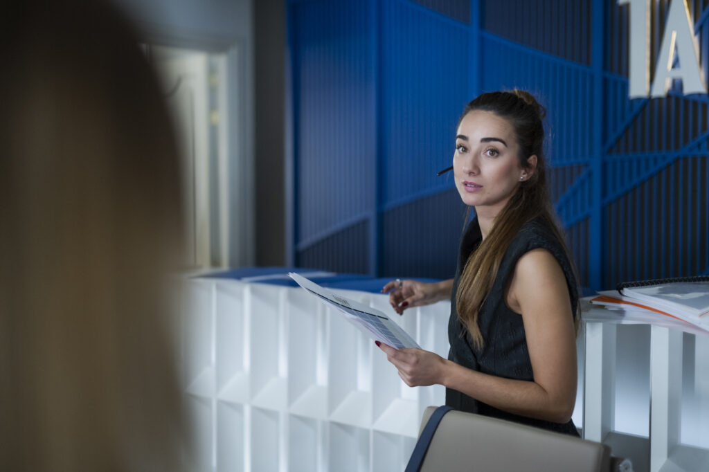 Irene Rojo (Madrid, 1996) interpreta a Sofía en La Agencia (Telecinco / Mediaset), la recepcionista de la agencia de representación artística Rebecca Talent.