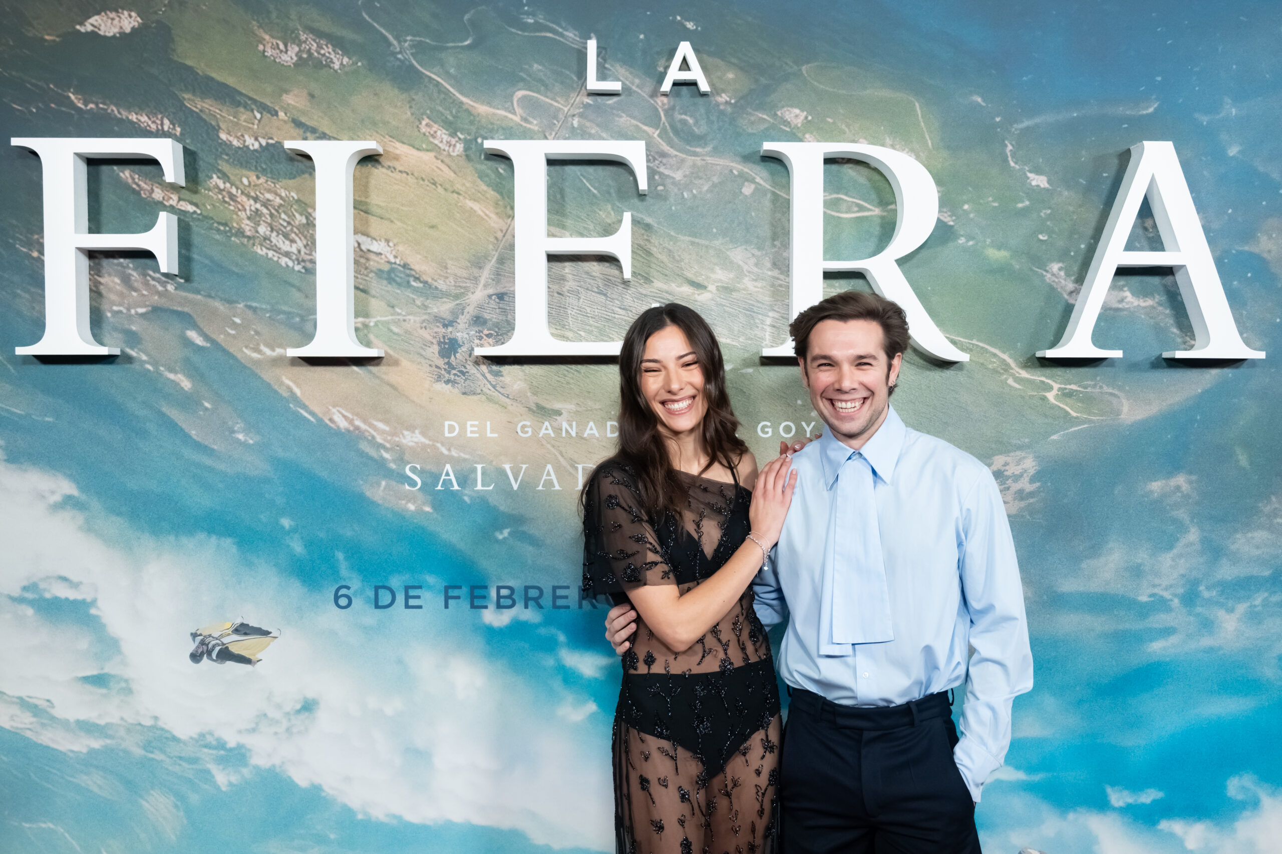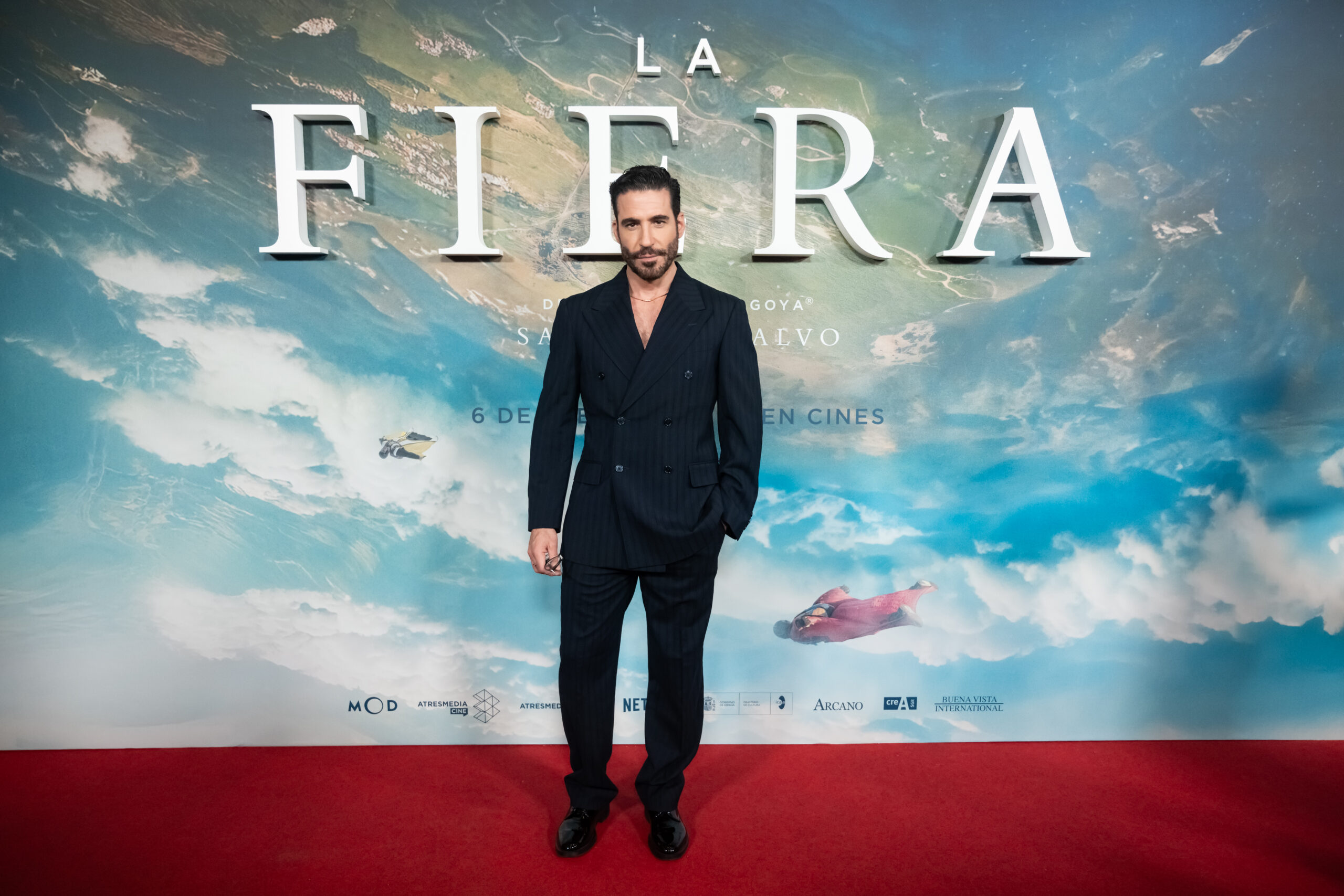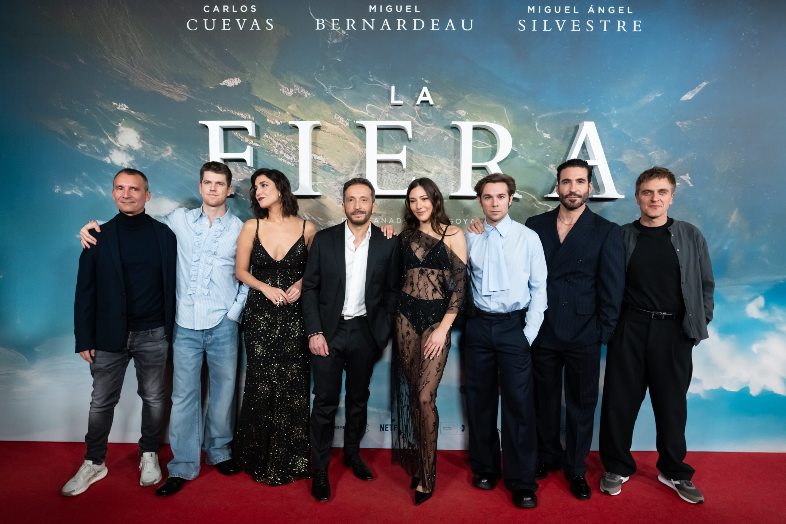 Este miércoles se ha celebrado la premiere de ‘La Fiera’ en Madrid. La película, que se estrena en cines este viernes 6 de febrero, está inspirada en una historia real y relata la amistad y la pasión compartida por los pioneros del salto BASE con traje de alas en España.