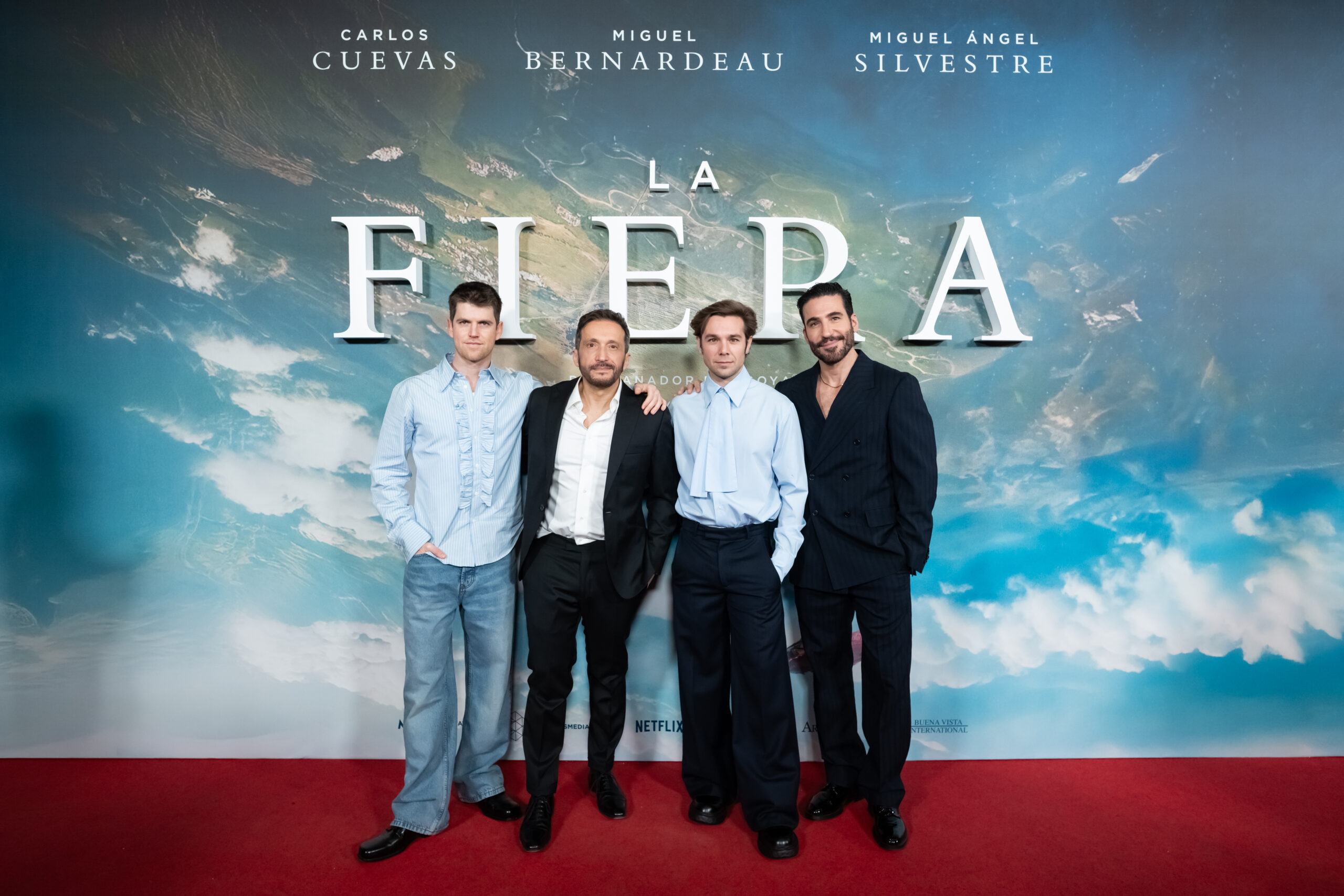 MADRID, SPAIN – FEBRUARY 04: Miguel Bernardeau, Salvador Calvo, Carlos Cuevas and Miguel Ángel Silvestre attend the premiere of «La Fiera» at Cine Capitol on February 04, 2026 in Madrid, Spain. (Photo by Juan Naharro Gimenez/Getty Images)