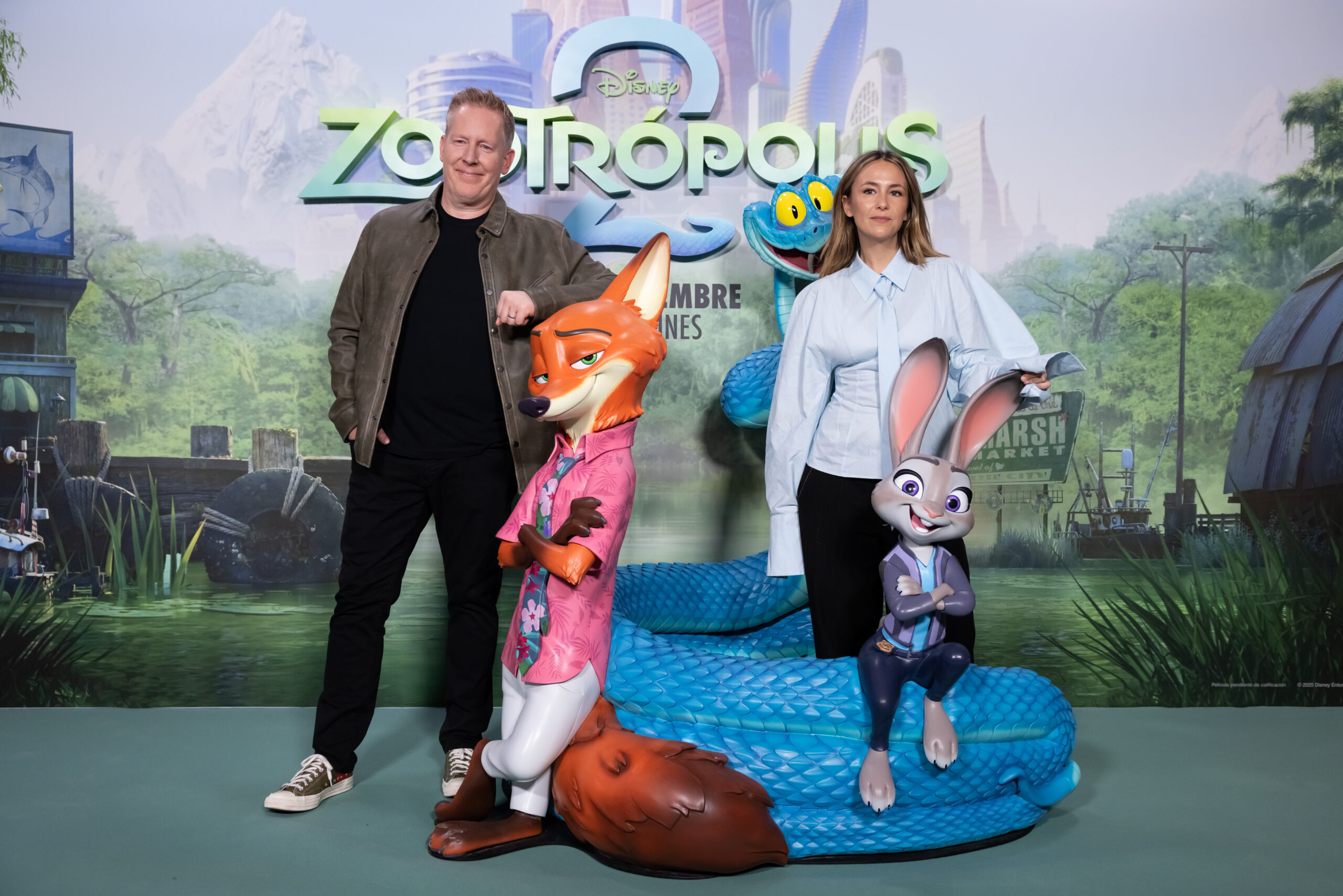 MADRID, SPAIN – NOVEMBER 25: Jared Bush and Rigoberta Bandini attend the photoshoot with director Jared Bush and voice talent Rigoberta Bandini for «Zootopia 2» at Santo Mauro Hotel on November 25, 2025 in Madrid, Spain. (Photo by David Benito/Getty Images for Disney)