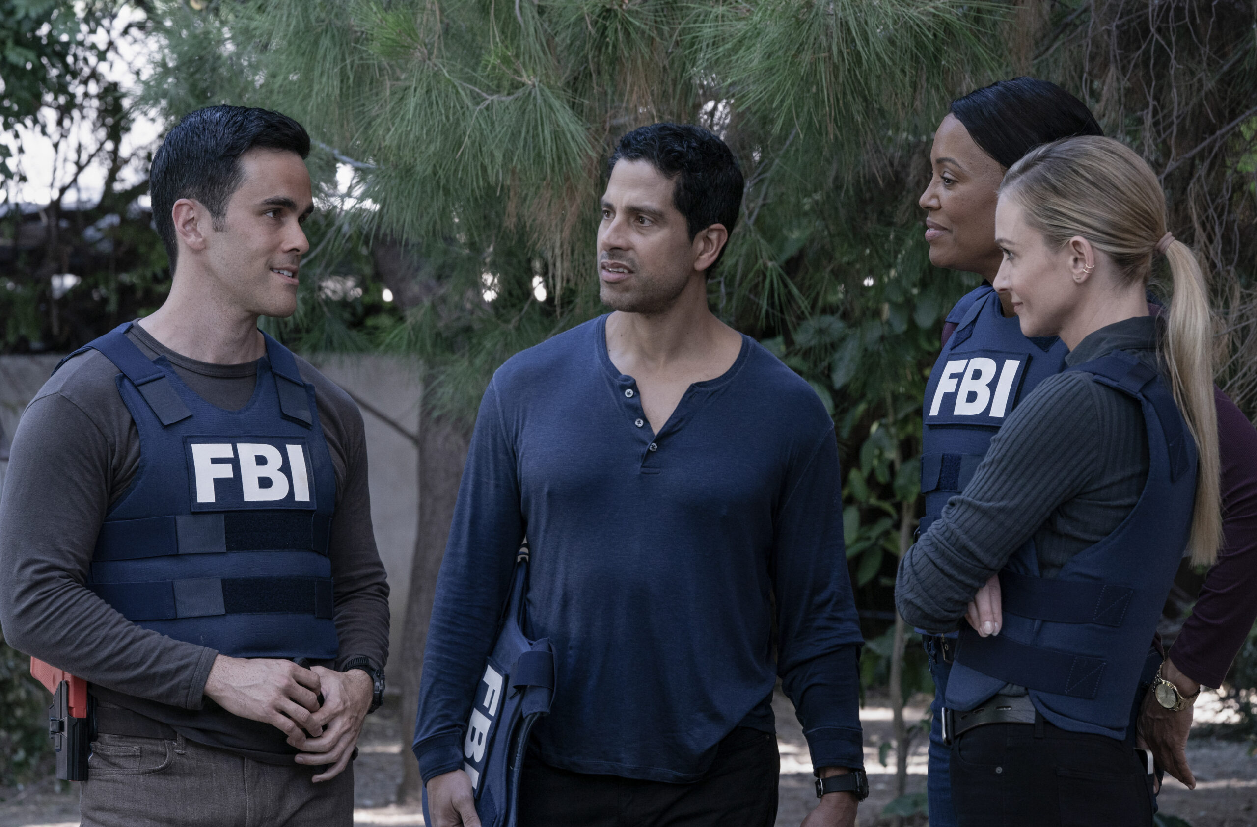 L-R: A.J. Cook as Jennifer ‘JJ’ Jareau, RJ Hatanaka as Tyler Green, Aisha Tyler as Dr. Tara Lewis and Adam Rodriguez as Luke Alvez in Criminal Minds: Evolution, episode 1, season 18 streaming on Paramount+, 2025. Photo Credit: Michael Yarish/Paramount+