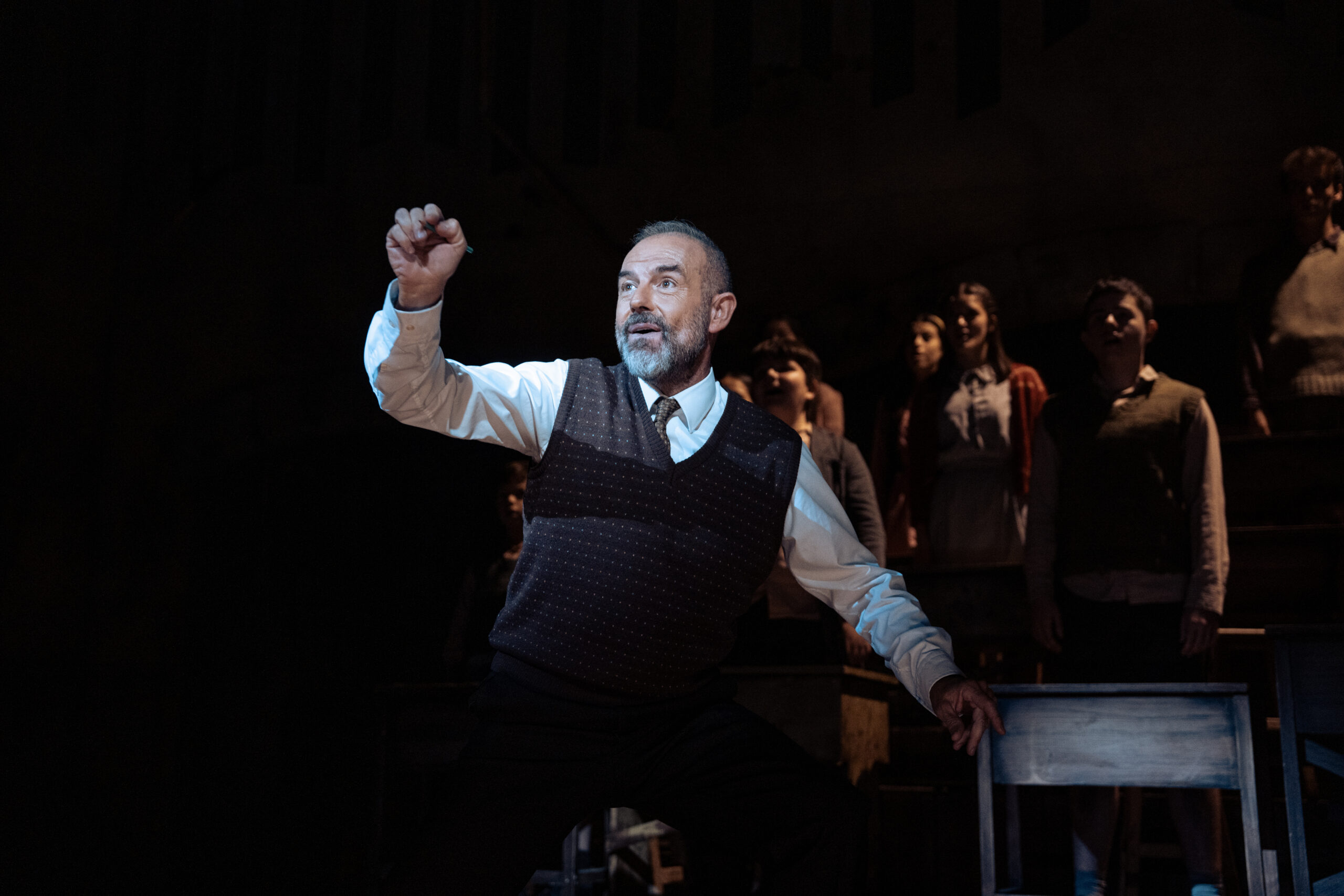 El montaje vuelve a la capital con un elenco encabezado por Manu Rodríguez en el papel de Clément Mathieu. Junto a él, Chus Herranz, nominada a Mejor Actriz Secundaria de Teatro en 2025, interpreta a Violette Morange y Rafa Castejón retoma el papel del director Rachin.
