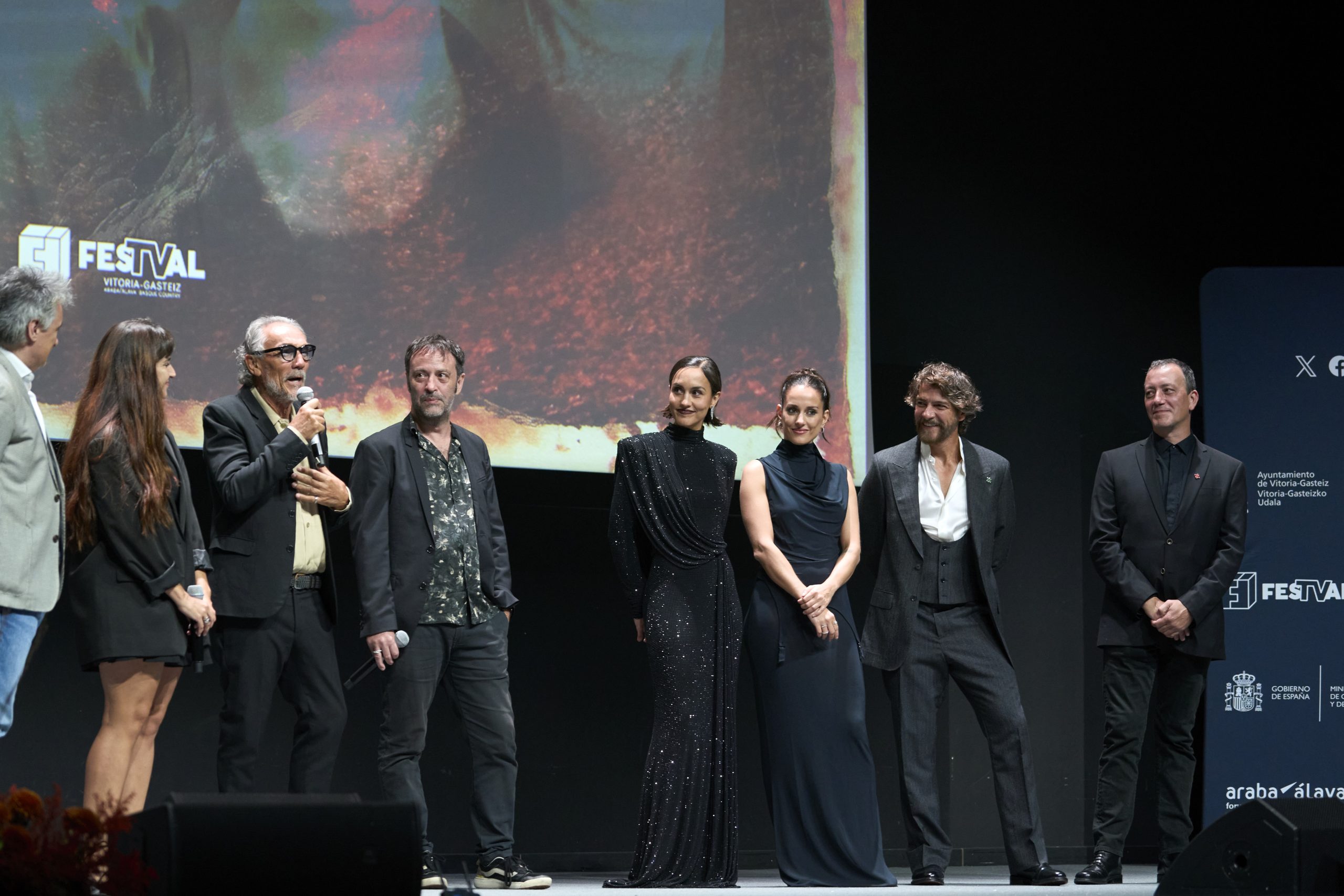 En la presentación han estado Megan Montaner, Félix Gómez, Silvia Alonso, Roger Casamajor, el creador de la serie, Agustín Martínez y los productores Susana Herreras (Movistar Plus+) y José Manuel Lorenzo (DLO Producciones).