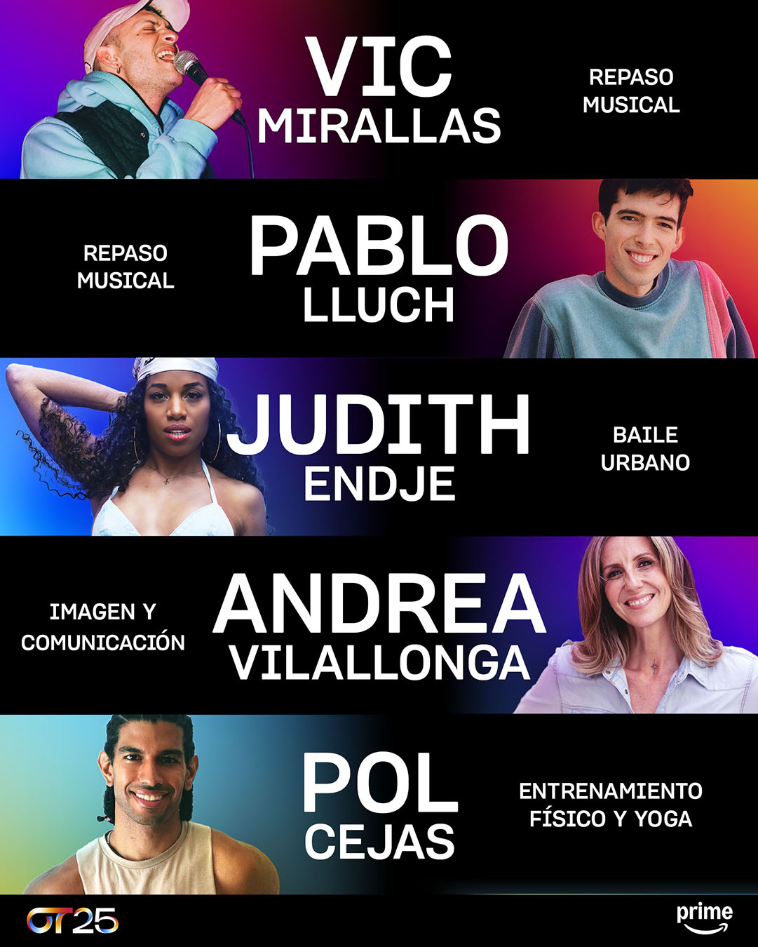 - Judith Endje – Profesora de baile urbano, repite su rol tras la edición de 2011 y 2023. Bailarina y coreógrafa con trayectoria internacional, ha trabajado con artistas como Shakira, Will Smith, Lola Índigo, Alejandro Sanz y Nathy Peluso. Dirige su escuela en Sabadell y ha participado en eventos como los MTV Awards y Los 40 Music Awards.