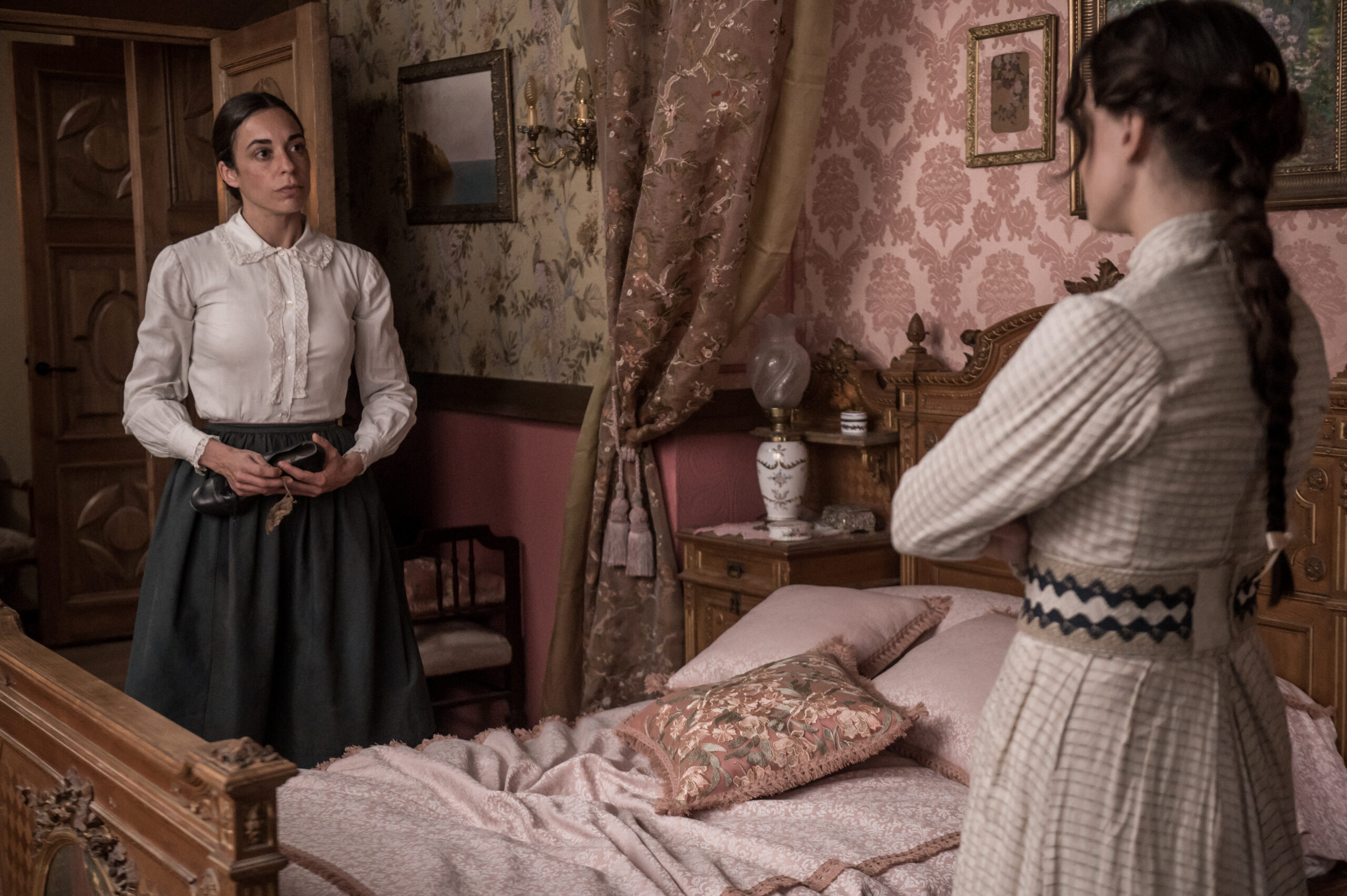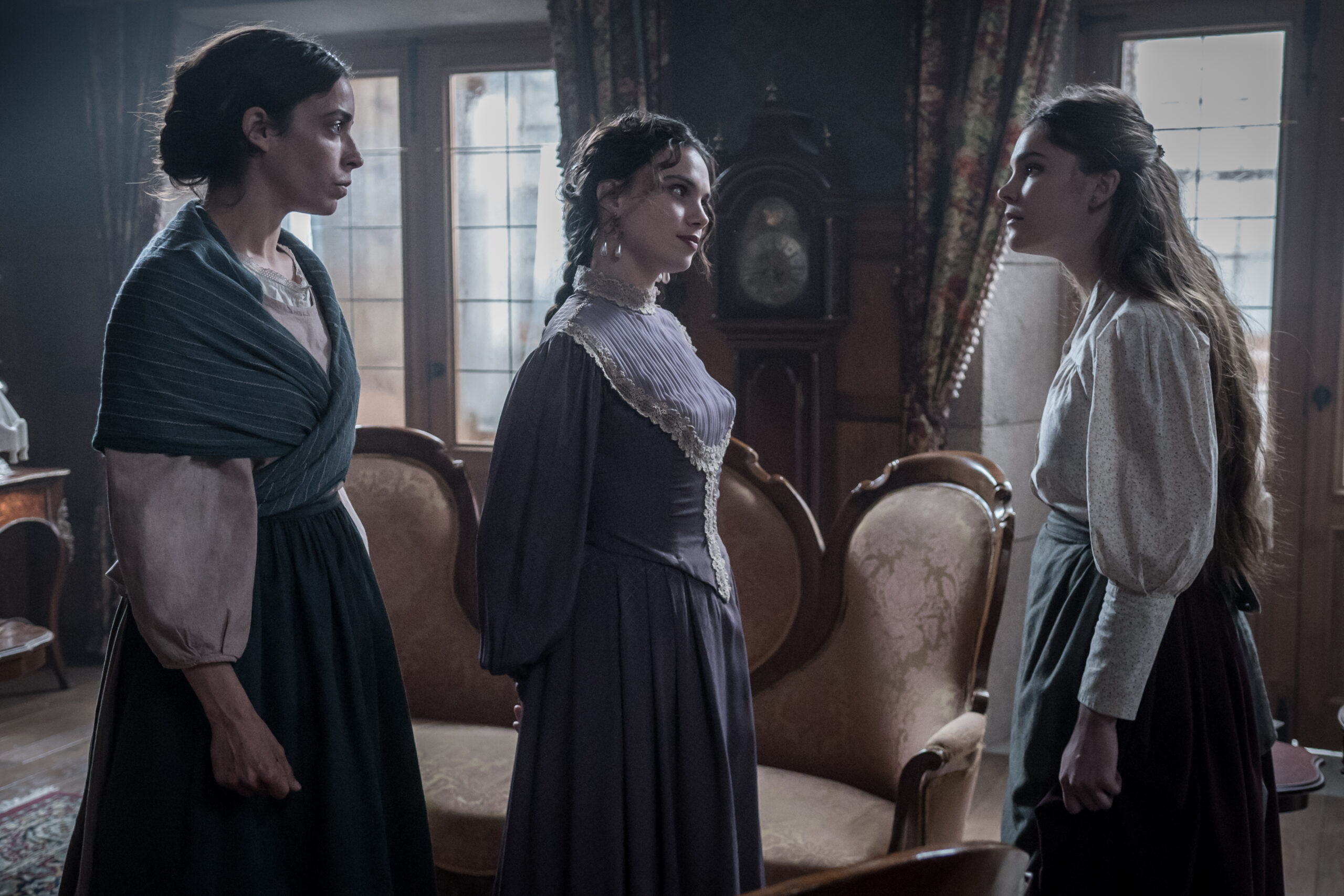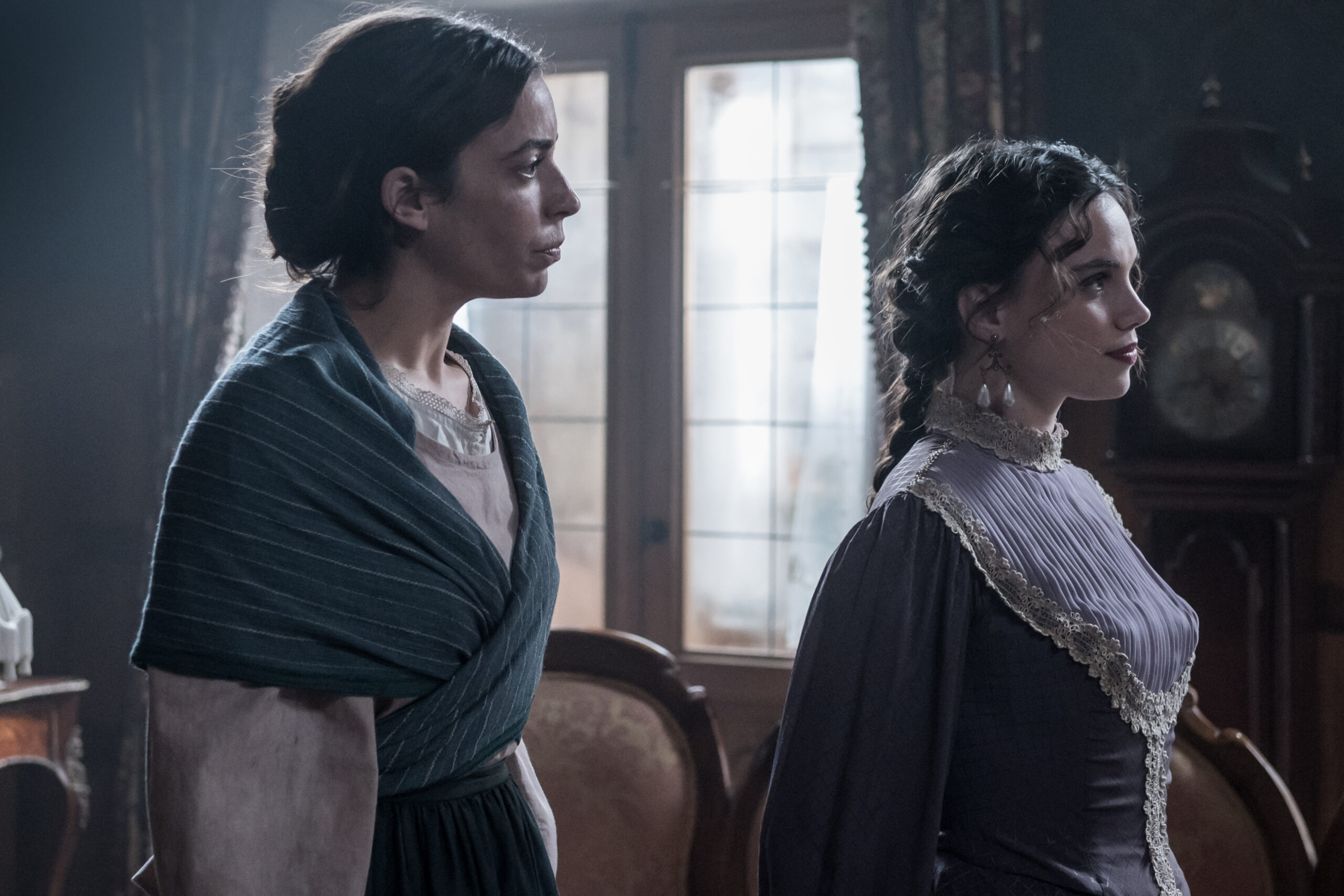 Clara, sensible, curiosa y llena de inquietudes, empieza a descubrir un mundo que se abre ante ella. Siente el deseo de mirar más allá de sus obligaciones y de una vida marcada por las apariencias. Inés, cada vez más unida a ella, le ofrece el apoyo que nunca recibió de su entorno. Esa complicidad despierta en Catalina una sensación incómoda, mezcla de celos, confusión y una identidad que no termina de encajar en el lugar que ocupa.