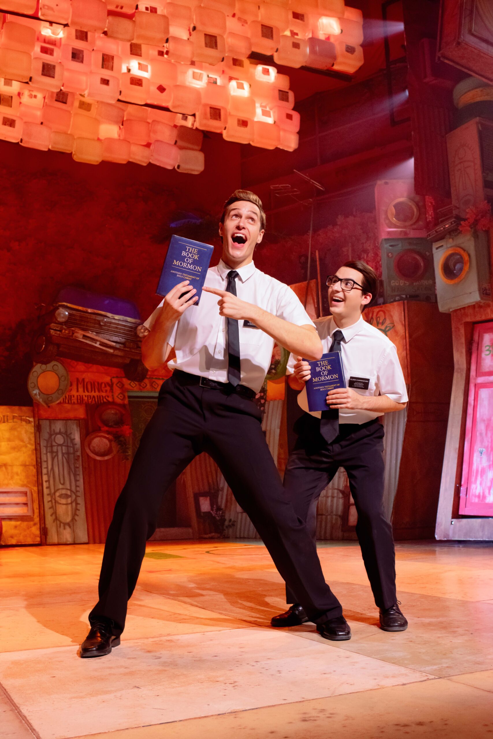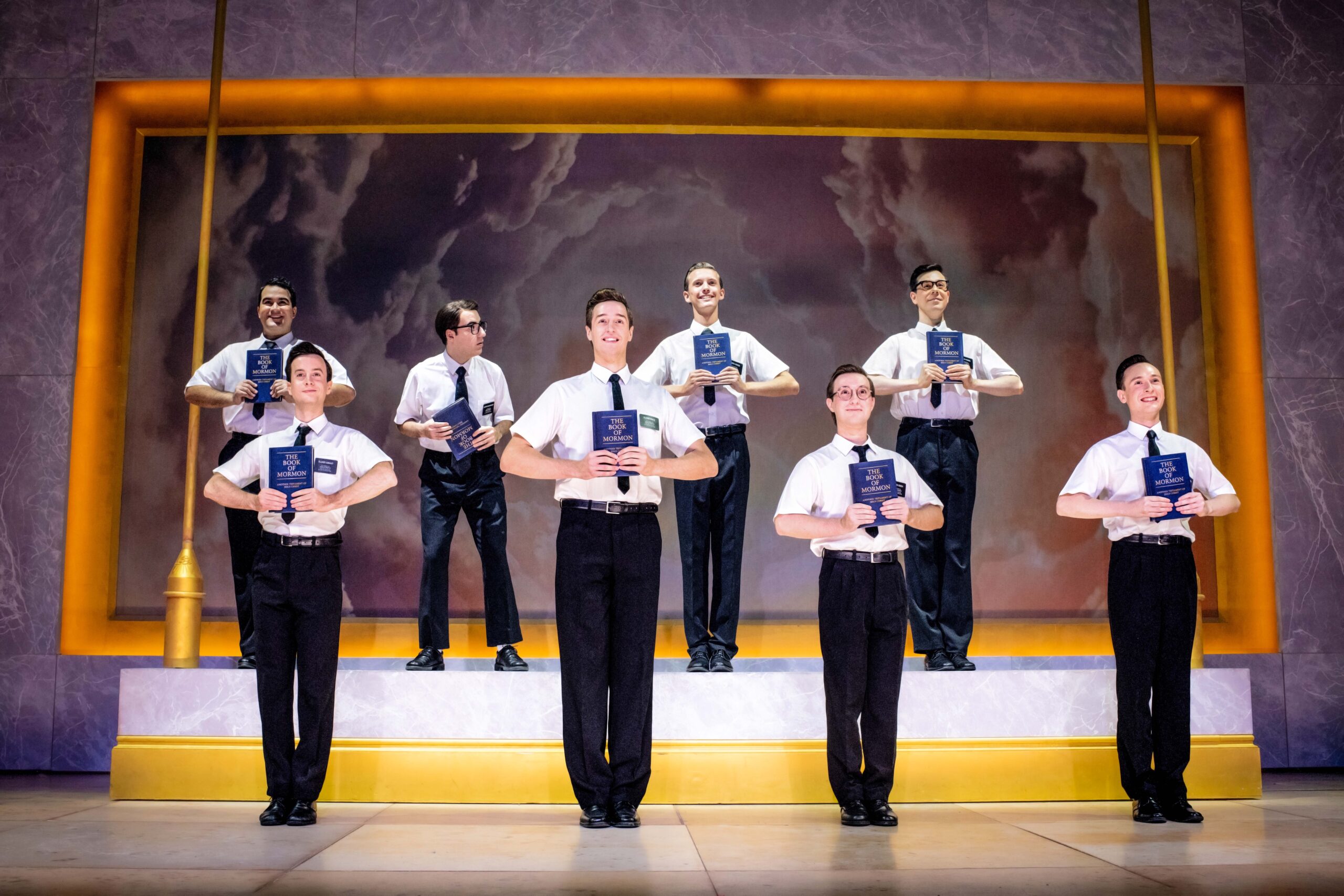 ‘The Book Of Mormon’ está protagonizado por: Alexandre Ars – Elder Price / Alejandro Mesa – Elder Cunningham / Albert Bolea – Elder McKinley / Jimmy Roca – Mafala / Aysha Fay – Nabulungi